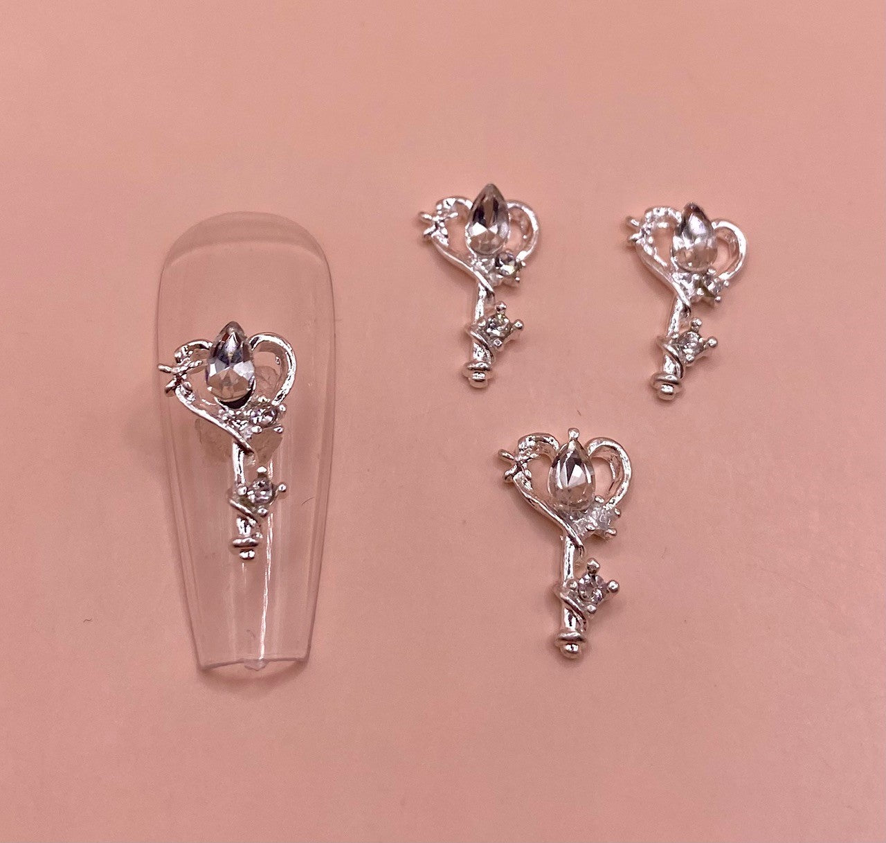 This gorgeous charm has a heart shaped key encrusted in zircon diamonds and showcases a big zircon in the center. This is an absolute must in your collection!